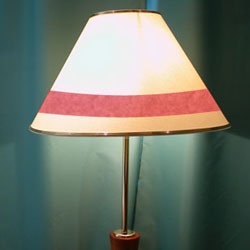 Take holiday-colored ribbon and pin or glue it around the bottom of your lamp shade. So simple and so stylish!